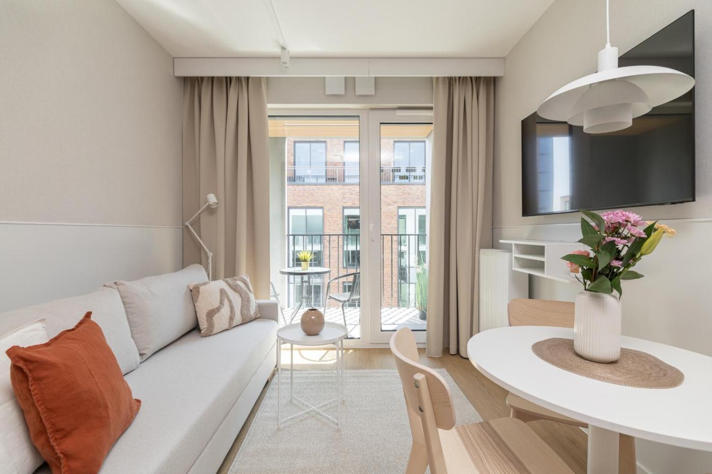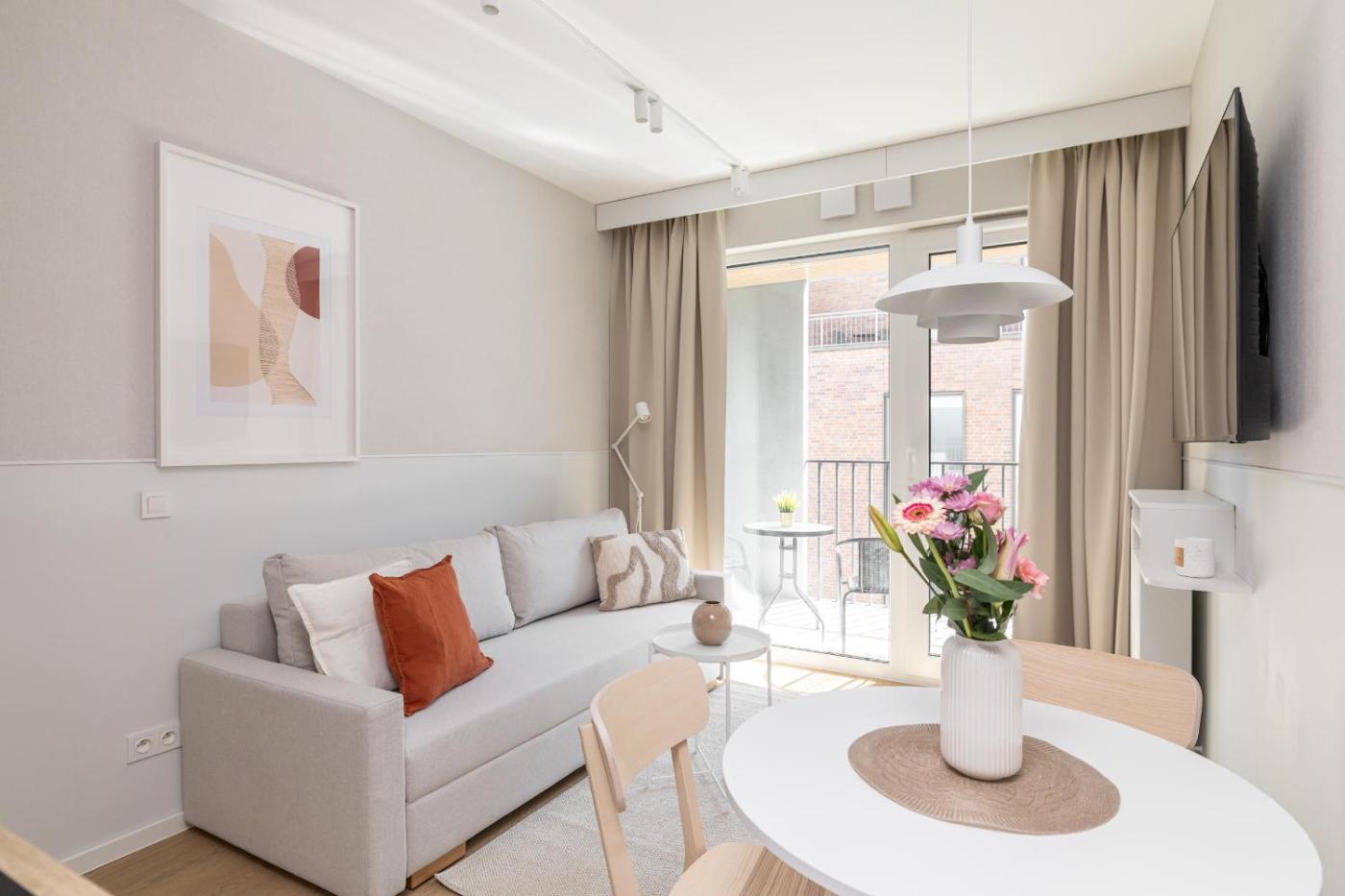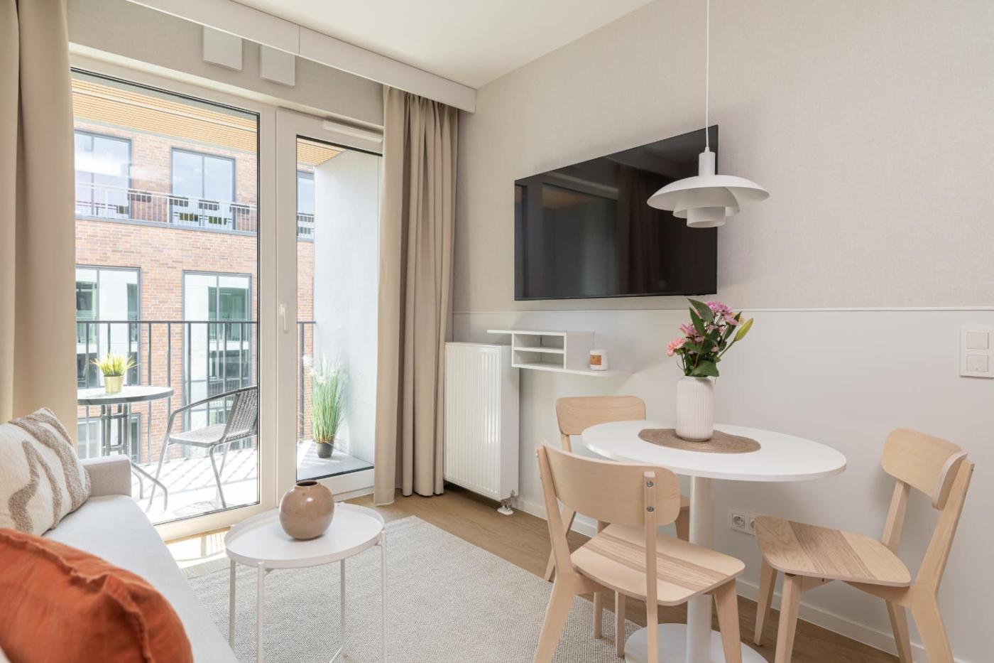 Apartament z 1 sypialnią. Boasting a private entrance, this apartment comes with 1 living room, 1 separate bedroom and 1 bathroom with a shower and a hairdryer. Guests can make meals in the kitchenette that features a stovetop, a refrigerator, a dishwasher and kitchenware. This apartment has a tea and coffee maker, executive lounge access, a flat-screen TV and a balcony. The unit has 2 beds. Apartament - 3 osobowy. Powierzchnia pokoju ok.: 32 mkw.