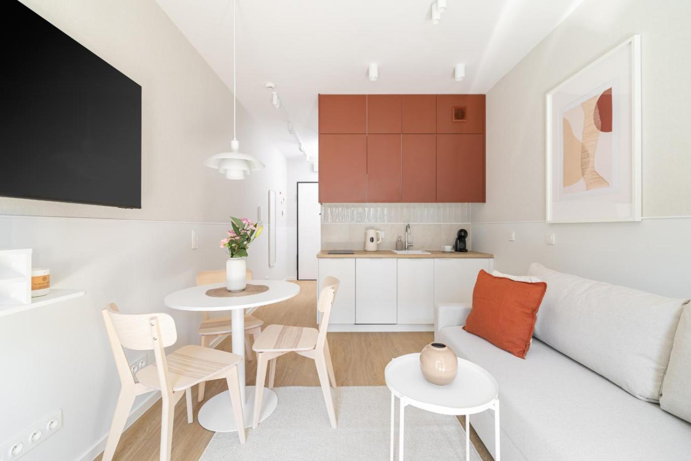 Każdą opcję zakwaterowania wyposażono w telewizor z płaskim ekranem. Do dyspozycji Gości jest balkon, jadalnia, aneks kuchenny z doskonałym wyposażeniem oraz prywatna łazienka z prysznicem, bezpłatnym zestawem kosmetyków i suszarką do włosów. Wyposażenie obejmuje także lodówkę, zmywarkę, płytę kuchenną, ekspres do kawy i czajnik.